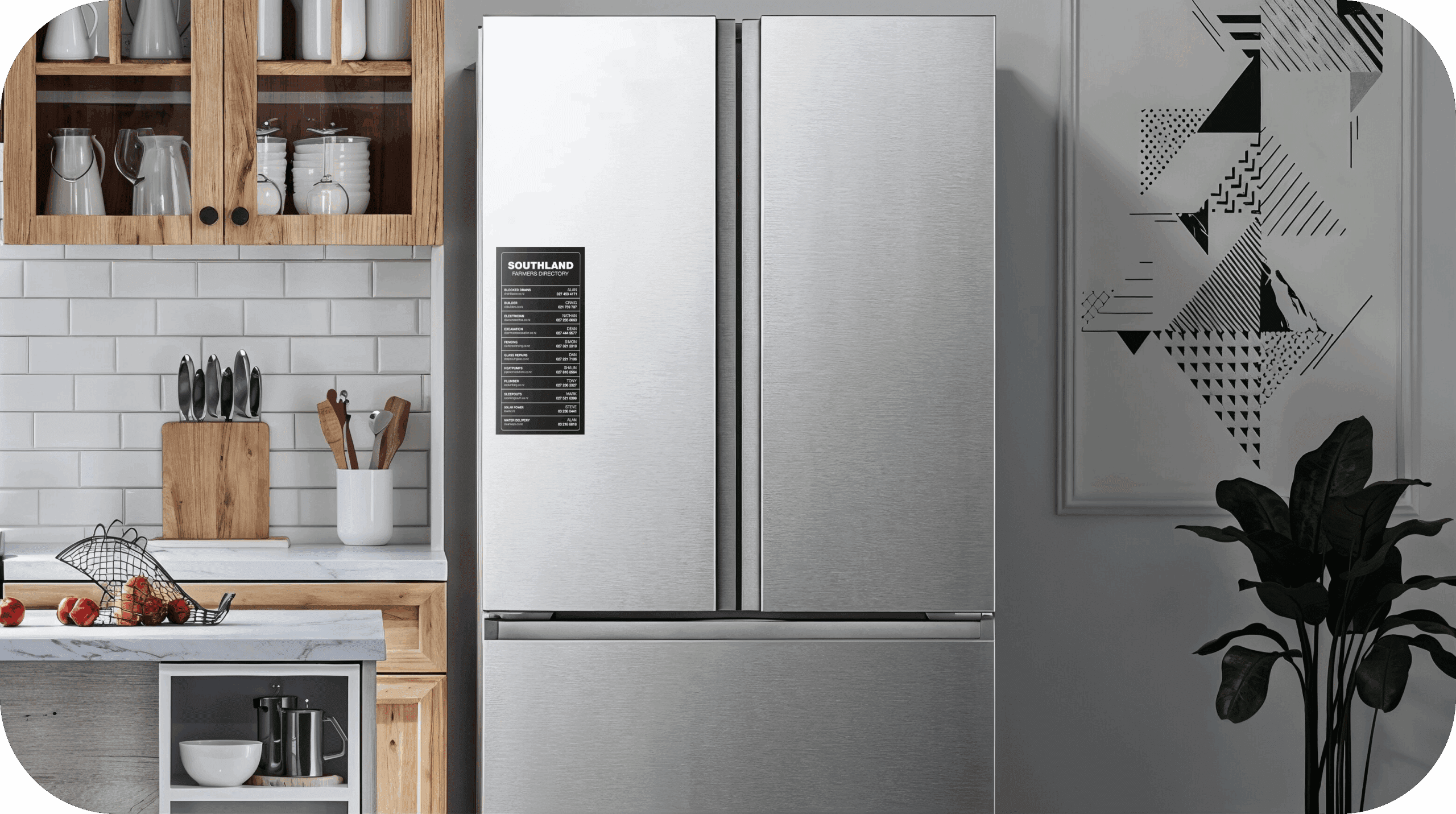 The Business directory is designed to attach to your fridge (it’s an envelope-sized fridge magnet). On average, a person opens their refrigerator about 10 to 20 times a day.